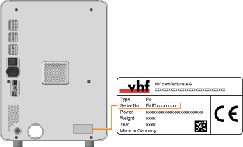 The identification plate of the machine contains identifying information such as the serial number. You can find the identification plate and machine serial number at the following location: