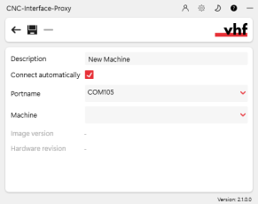 • If dentalcnc is able to determine the port number, the number displays in the Port number input field. The machine references.