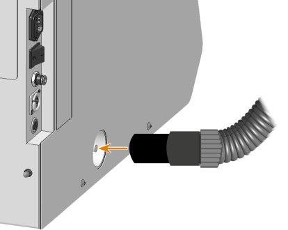 - Connect the control cable of the switching unit to the suction device data port at the connection panel of the machine.