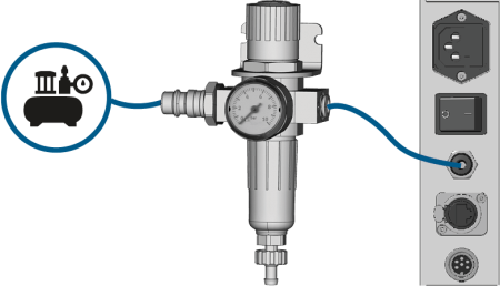 - Connect the external compressed air supply to the left pneumatic connection of the compressed air regulator.