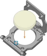 - The disc is fixated in the blank holder. The disc is mounted in the working chamber.