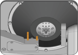 7. Apply a bit of collet chuck grease (marked orange) to the bolts of the tool magazine holder.