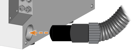 - Insert the hose connection into the opening for the air extraction system of the machine. Ensure it is firmly connected.