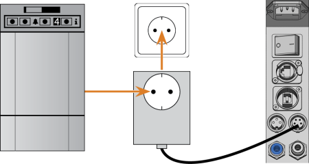 If you want the machine to automatically switch the suction unit on and off, but a data cable is not available, you can use the optional switching unit. The switching unit is not available worldwide.