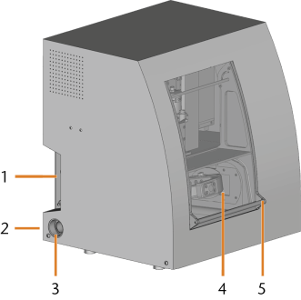1. Blank magazineClosed Part of the blank changer in which you store the blanks for automatic loading. door