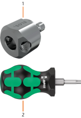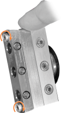 The positioning pins on the underside of the abutment grip (marked green) must fit into the openings in the abutment holder (marked orange).