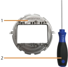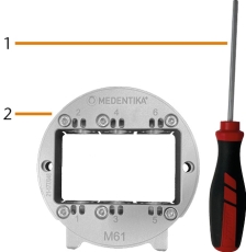 - To fixate the MEDENTIKA PreFace® abutment holder, screw the 2 cylinder screws into the blank holder with the provided allen key.