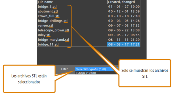 De manera predeterminada, puede seleccionar manualmente archivos STL para importarlos a dentalcam.