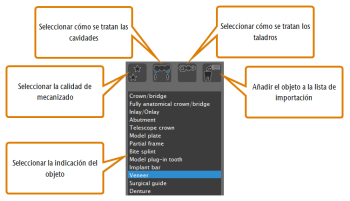 - En la lista de selección, marque la indicación para el archivo de objeto. dentalcam necesita conocer la indicación correcta (qué es básicamente el objeto) o, de lo contrario, el programa no podrá seleccionar la estrategia de mecanizado correcta para el objeto.