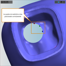 - Coloque los puntos de medición para un extremo del taladro (en la siguiente figura, en el lado basal).