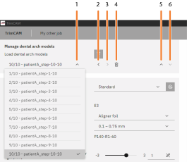 Expandir y contraer la lista de modelos de arco dental
