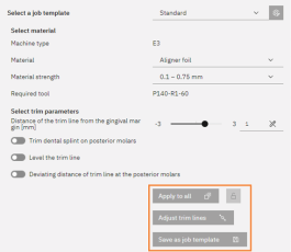 Para aplicar los parámetros del modelo de arco dental actual a toda la tarea, seleccione . En caso necesario, active la función seleccionando el candado situado junto al botón.