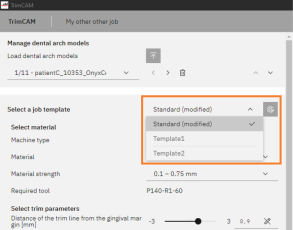 Para guardar los parámetros del modelo de arco dental actual como plantilla, seleccione Guardar como plantilla de tarea.