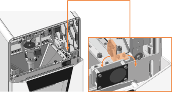 Mantenga el clip en esta posición hasta que la máquina realice el referenciado o la iluminación de la cámara de trabajo se encienda en rojo.