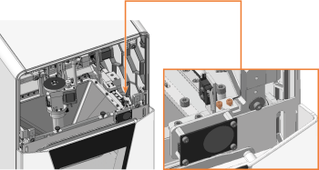 Compruebe que la cubierta de seguridad (marcada en naranja) está colocada.