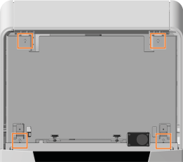 Coloque la tapa de seguridad de manera que los 4 orificios de tornillo estén por encima de los 4 orificios de tornillo de la carcasa de la máquina.