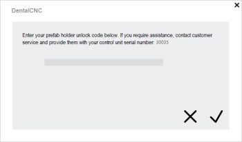 Accanto all'opzione di sblocco nella vista Dati macchina, dentalcnc chiederà un codice di sblocco non appena si inizia a lavorare un job che richiede un accessorio opzionale