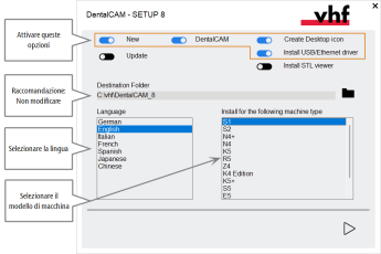 • Installare solo le ultime versioni di dentalcam e dentalcnc disponibili per la macchina CNC.