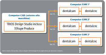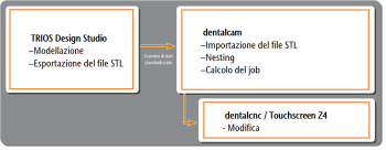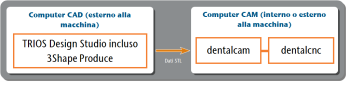 3Shape Produce consente lo scambio di dati standardizzato tra TRIOS Design Studio e dentalcam.
