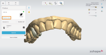 Se si utilizzano più macchine nel flusso di lavoro 3Shape Produce, selezionare la macchina in TRIOS Design Studio: