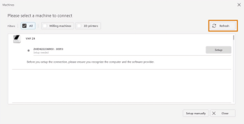 Aggiornare l'elenco delle macchine in TRIOS Design Studio con Refresh.