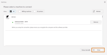 Salvare la configurazione della macchina con Close (chiudi).
