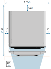 È necessario uno spazio libero di almeno 60 x 80 x 80 cm / 24 x 32 x 32 in (L/P/H) davanti allo scatolone.