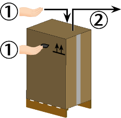 - Afferrare lo scatolone dalle maniglie incassate. Sollevare lo scatolone dal pallet.
