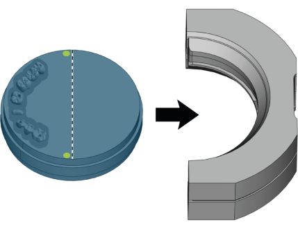 4. Se il disco è composto da più strati, allineare il pezzo grezzo in modo che la parte superiore colorata si trovi in alto.