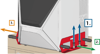 Tirare i due bulloni di bloccaggio verso l'alto, quindi rimuovere l'ausilio di trasporto.