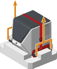 Sollevare dal pallet il telaio della cassa (contrassegnato in arancione).