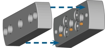 Con un supporto per abutment DESS la macchina può lavorare abutment prefabbricati con geometrie di collegamento prefabbricate che si adattano al supporto ( Pezzi grezzi di abutment prefabbricati supportati in dentalcam 8).