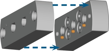 Con un supporto per abutment DENRACLE la macchina può lavorare abutment prefabbricati con geometrie di collegamento prefabbricate che si adattano al supporto ( Pezzi grezzi di abutment prefabbricati supportati in dentalcam 8).