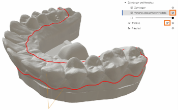 Importante: Non appena si modificano altri parametri di elaborazione del job, il calcolo dei modelli dell'arcata dentaria interessati viene aggiornato e le precedenti regolazioni della linea di taglio vengono ripristinate.