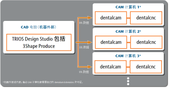 3Shape Produce 可实现 TRIOS Design Studio 和 dentalcam 之间的标准化数据交换。