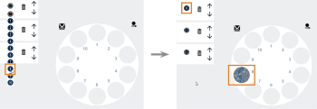 示例:向下移动最上面的条目;选定的图标标记为橙色