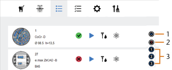 如果仍在计算作业,dentalcnc 会在作业列表中相应行的开头显示一个进度条。进度条填充部分越度,完成的计算计算部分就越多。