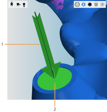 - 钻孔的开口表面完全标记为绿色。开口表面还包括连接几何形状和内边缘。
