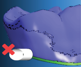 每个物体至少应设置 3 个连接杆。多单元物体通常在每个单元上需要 2 个连接杆。否则,在加工过程中可能会发生振动,这可能导致胚料或车针损坏。