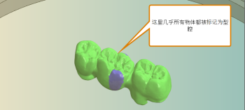 两个排版视图中,右侧的胚料显示都相同。它显示了加工后的胚料外观(至少是在一定程度上大致如此),这是您进行大批排版工作的地方。知道如何处理胚料显示图是有效使用 dentalcam 的关键。