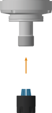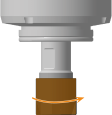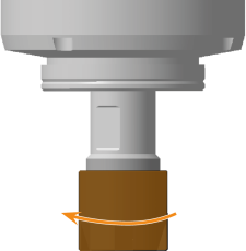 将夹头(标记为蓝色)装入夹紧螺母(标记为橙色)中,用手将夹紧螺母朝主轴上顺时针旋转约 1 圈。