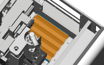 将保护罩(标记为橙色)从 Z 轴和机器前部的尼龙搭扣条(标记为蓝色)拉下。