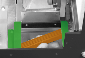 挤压保护罩,将其斜着从导向件(标记为绿色)取出。