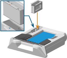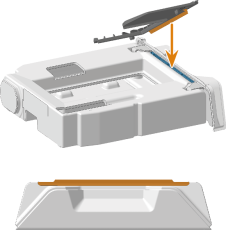 插入滤网篮。确保滤网篮上的凹槽对准冷却液容器上的标记。