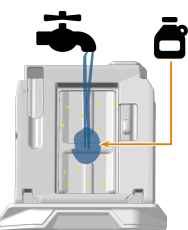 将水注入冷却液容器进行清洗。添加温和清洁剂(可选)。