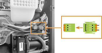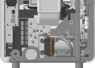 将随附电缆扎带移至冷却液泵的支架(标记为橙色)后侧。