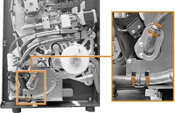 用 4 条电缆扎带固定抽吸软管。确保抽吸软管的加粗部分位于凹槽内。