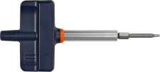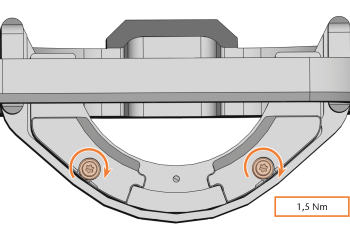 - 如果坯料夹具背面的 2 个螺丝被盖帽(标记为橙色)覆盖: