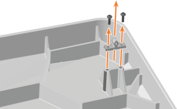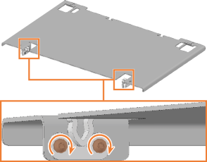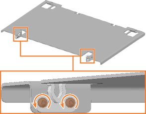 将维修盖的螺栓 (标记为橙色) 插入安全盖上的支架(标记为绿色)。