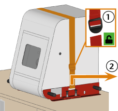 取出固定运输箱盖的螺钉(标记为橙色)。